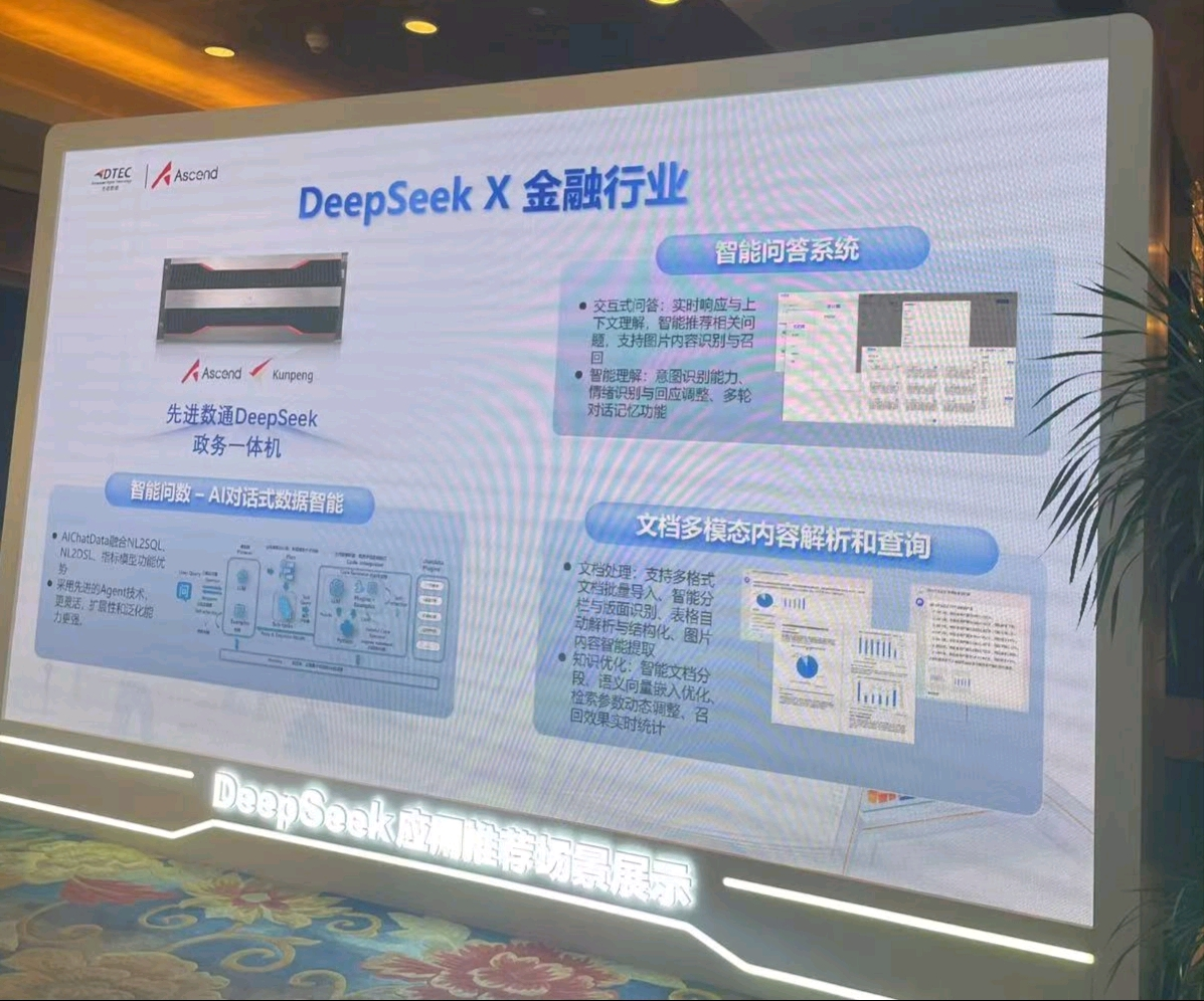 本次大会kdpay钱包官网展示了DeepSeek一体机,向业界全方位展示了其在金融科技领域的创新实力。kdpay钱包官网DeepSeek一体机的文档多模态内容解析和查询功能备受瞩目。它能够对各类金融文档,如研究报告、监管文件、交易记录等进行全方位解析,将文本、图表、图像等多模态信息转化为可高效查询和分析的结构化数据。金融组织借此可快速定位关键信息、洞察市场趋势、防范合规风险,为决策给予有力支持,实现从数据到价值的高效转化。